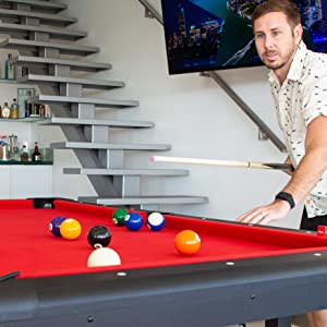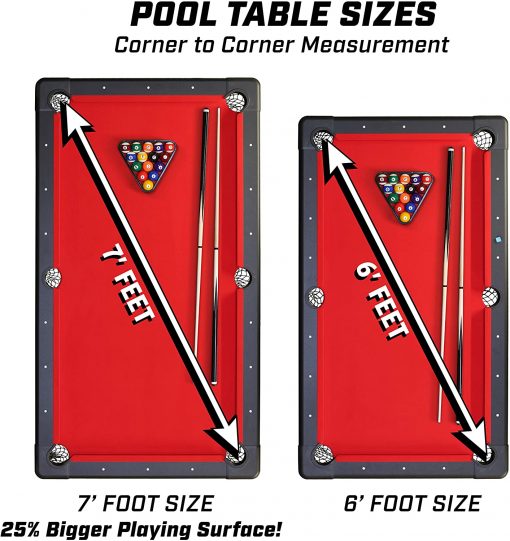 GoSports 7ft Billiards Table – Portable Pool Table – Includes Full Set of Balls, 2 Cue Sticks, Chalk, and Felt Brush