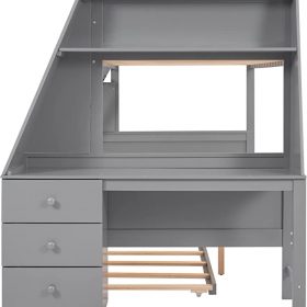 High-quality materials Twin over Full Bunk Bed Three Storage Drawers and Shelf