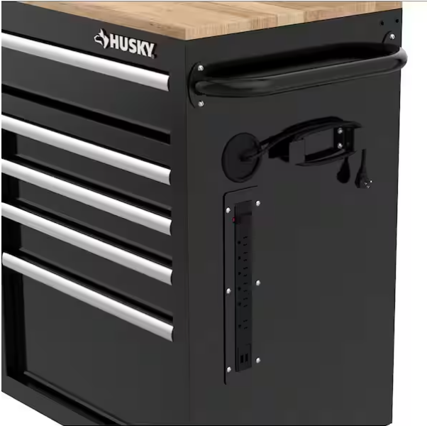The brand-new Husky extra-deep 46-inch 9-drawer mobile workbench is now available. This kit includes a 46-inch power station for additional storage and power supply.