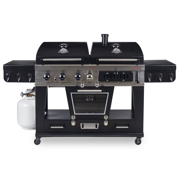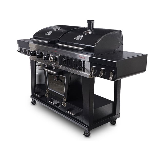 What’s more amazing is that the total cooking area is over 2,000 square inches. Broken down, you get 1,327 square inches in the main grilling area, and 840 square inches in an electric smoker. That main cooking area can be powered by either gas or charcoal-based fuel. The electric element is 1,500W and quite powerful. You get shelves on either side of the grill, each with utensil hooks you can use to mount your spatula and other tools. That leaves plenty of space on top for your condiments, meats, plates, and other gear. It is a massive system, and there’s plenty of cooking space, plenty of storage, and plenty to do! What are you waiting for? Grab this beast of a grill while you can!